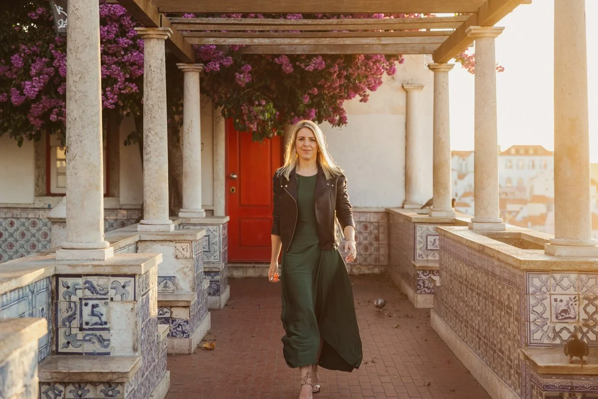 The images accompanying this blog post were captured during an immersive two-day personal branding photoshoot. We began at sunrise at one of Lisbon’s most iconic viewpoints, capturing the sense of freedom and joy that her audience aspires to. The second part took place in a luxurious villa in the coastal town of Ericeira, Portugal — a stunning location that allowed us to create high-end, serene imagery with a refined, luxury feel.
